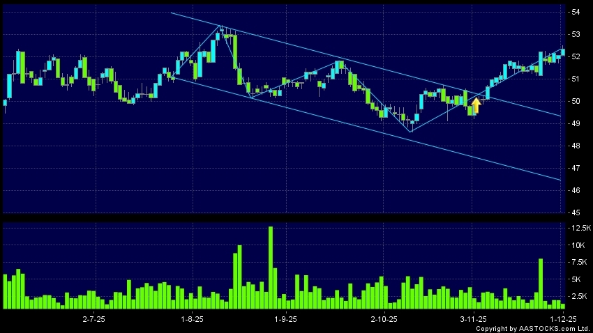 POWER ASSETS(00006.HK) appears an upside range breakout. Last printed at 52.350; rose 0.576%; on volume of 1.39M shares and turnover of $72.73MRecent PerformanceIn 3 days: +1.159%I...