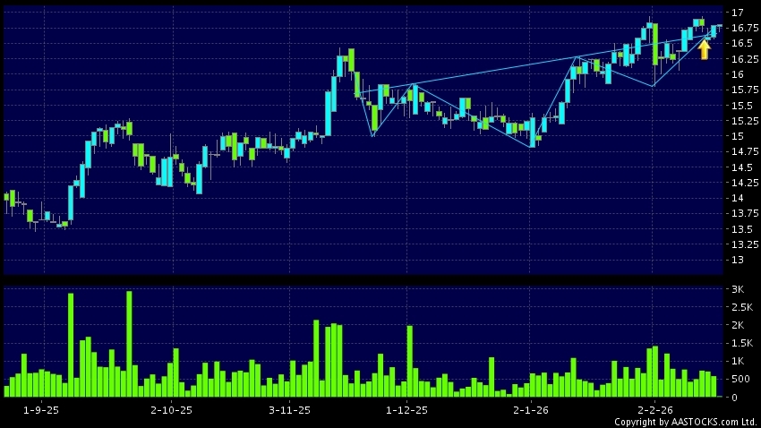 Head Shoulders bottom is a typical bullish signal, when stock price breaks the resistant level, uptrend would possibly start.(HK stocks quote is delayed for at least 15 mins.Short Selling Data as at 2026-02-26 16:25.)