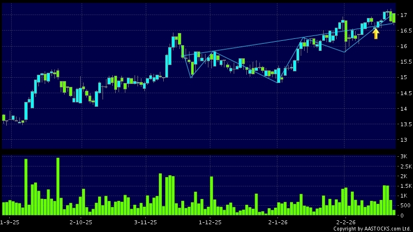 Head Shoulders bottom is a typical bullish signal, when stock price breaks the resistant level, uptrend would possibly start.(HK stocks quote is delayed for at least 15 mins.Short Selling Data as at 2026-02-26 16:25.)