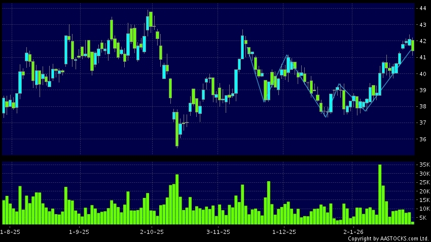 Disclaimer:The information, financial market data, quotes, charts, statistics and / or various technical analysis indicators are automatically generated based on the analyses and interpretations of publicly available information and should be used as references only at your own discretion. Such automatically generated content does not reflect the views or opinions of AASTOCKS.com Limited nor does AASTOCKS.com Limited make any guarantees to their accuracy, completeness, timeliness or correctness. You are advised to consult independent professional advice to verify pricing information or to obtain more detailed market information. Any uses of information or trades executed following the said automatically generated content are taken at your own risk for your own account.