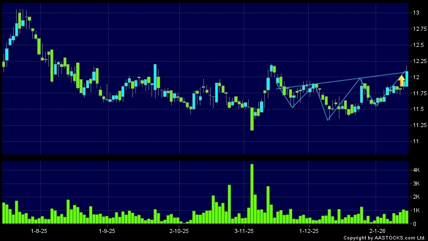 SWIRE PACIFIC B(00087.HK) appears an upside breakout, rose above the neckline. Last printed at 12.090; rose 1.341%; on volume of 1.01M shares and turnover of $12.13MRecent Performa...