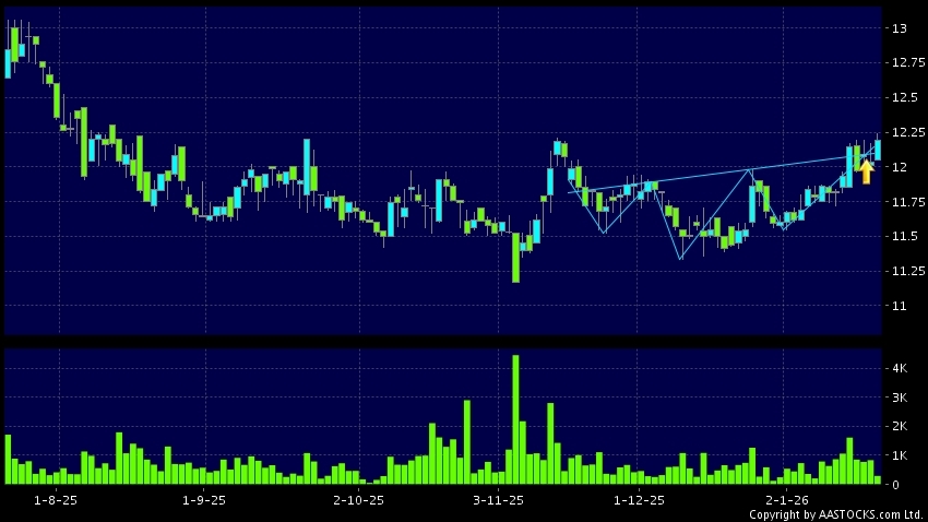 SWIRE PACIFIC B(00087.HK) appears an upside breakout, rose above the neckline. Last printed at 12.190; rose 1.330%; on volume of 292.50K shares and turnover of $3.56MRecent Perform...