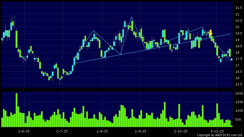 Head Shoulders top is a typical bearish signal, when stock price breaks the supportive level, downtrend would possibly start.(HK stocks quote is delayed for at least 15 mins.Short Selling Data as at 2025-11-14 16:25.)