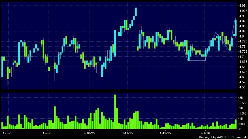 Disclaimer:The information, financial market data, quotes, charts, statistics and / or various technical analysis indicators are automatically generated based on the analyses and interpretations of publicly available information and should be used as references only at your own discretion. Such automatically generated content does not reflect the views or opinions of AASTOCKS.com Limited nor does AASTOCKS.com Limited make any guarantees to their accuracy, completeness, timeliness or correctness. You are advised to consult independent professional advice to verify pricing information or to obtain more detailed market information. Any uses of information or trades executed following the said automatically generated content are taken at your own risk for your own account.