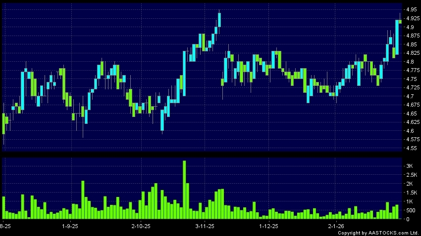 Disclaimer:The information, financial market data, quotes, charts, statistics and / or various technical analysis indicators are automatically generated based on the analyses and interpretations of publicly available information and should be used as references only at your own discretion. Such automatically generated content does not reflect the views or opinions of AASTOCKS.com Limited nor does AASTOCKS.com Limited make any guarantees to their accuracy, completeness, timeliness or correctness. You are advised to consult independent professional advice to verify pricing information or to obtain more detailed market information. Any uses of information or trades executed following the said automatically generated content are taken at your own risk for your own account.