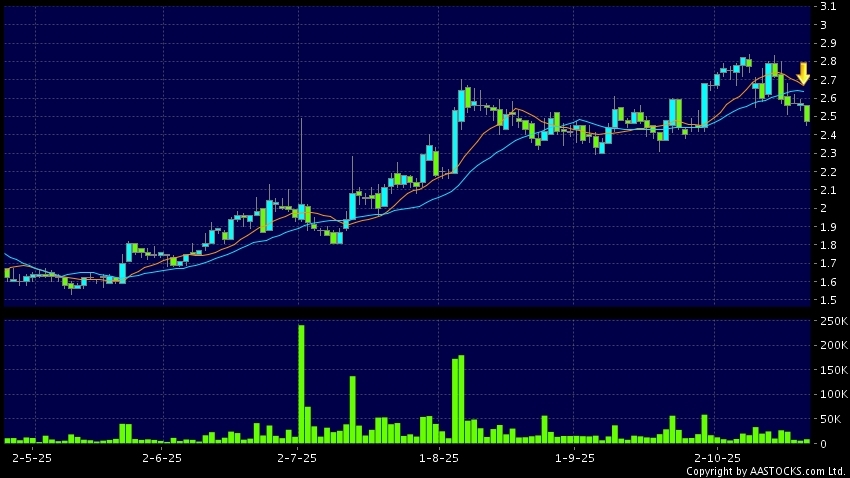 Disclaimer:The information, financial market data, quotes, charts, statistics and / or various technical analysis indicators are automatically generated based on the analyses and interpretations of publicly available information and should be used as references only at your own discretion. Such automatically generated content does not reflect the views or opinions of AASTOCKS.com Limited nor does AASTOCKS.com Limited make any guarantees to their accuracy, completeness, timeliness or correctness. You are advised to consult independent professional advice to verify pricing information or to obtain more detailed market information. Any uses of information or trades executed following the said automatically generated content are taken at your own risk for your own account.