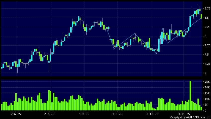 Disclaimer:The information, financial market data, quotes, charts, statistics and / or various technical analysis indicators are automatically generated based on the analyses and interpretations of publicly available information and should be used as references only at your own discretion. Such automatically generated content does not reflect the views or opinions of AASTOCKS.com Limited nor does AASTOCKS.com Limited make any guarantees to their accuracy, completeness, timeliness or correctness. You are advised to consult independent professional advice to verify pricing information or to obtain more detailed market information. Any uses of information or trades executed following the said automatically generated content are taken at your own risk for your own account.