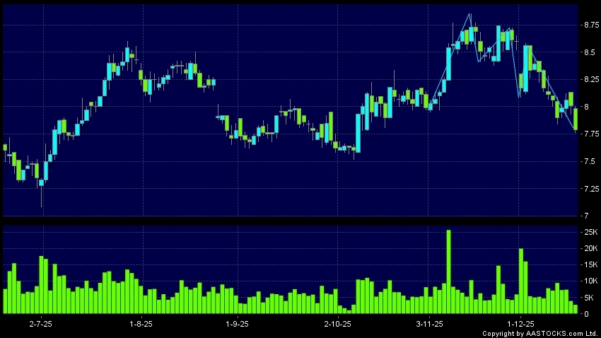 Disclaimer:The information, financial market data, quotes, charts, statistics and / or various technical analysis indicators are automatically generated based on the analyses and interpretations of publicly available information and should be used as references only at your own discretion. Such automatically generated content does not reflect the views or opinions of AASTOCKS.com Limited nor does AASTOCKS.com Limited make any guarantees to their accuracy, completeness, timeliness or correctness. You are advised to consult independent professional advice to verify pricing information or to obtain more detailed market information. Any uses of information or trades executed following the said automatically generated content are taken at your own risk for your own account.