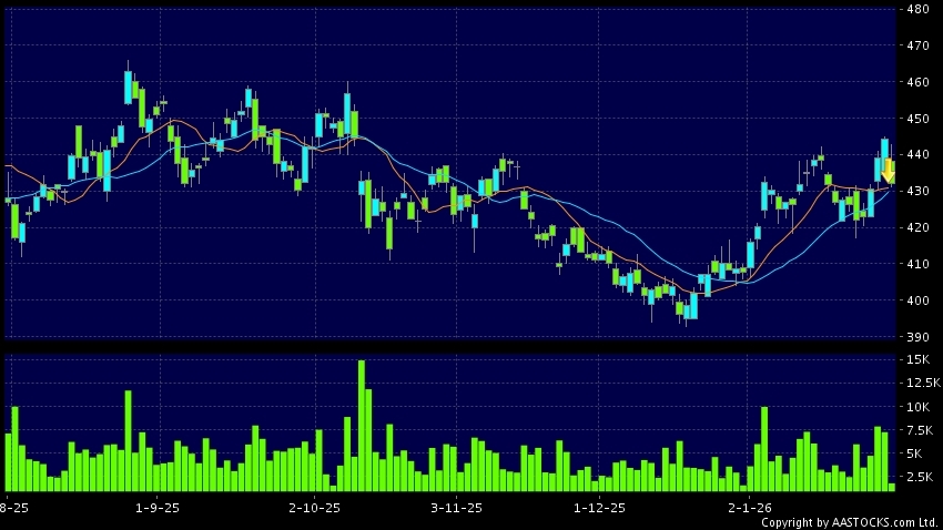 HKEX(00388.HK)'s SMA 10 crosses below SMA 20, which is a death cross. Last printed at 431.600; fell 2.837%; on volume of 1.93M shares and turnover of $837.89MRecent PerformanceIn 3...