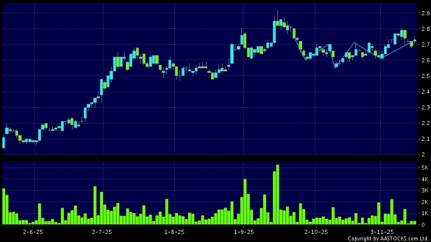 Disclaimer:The information, financial market data, quotes, charts, statistics and / or various technical analysis indicators are automatically generated based on the analyses and interpretations of publicly available information and should be used as references only at your own discretion. Such automatically generated content does not reflect the views or opinions of AASTOCKS.com Limited nor does AASTOCKS.com Limited make any guarantees to their accuracy, completeness, timeliness or correctness. You are advised to consult independent professional advice to verify pricing information or to obtain more detailed market information. Any uses of information or trades executed following the said automatically generated content are taken at your own risk for your own account.