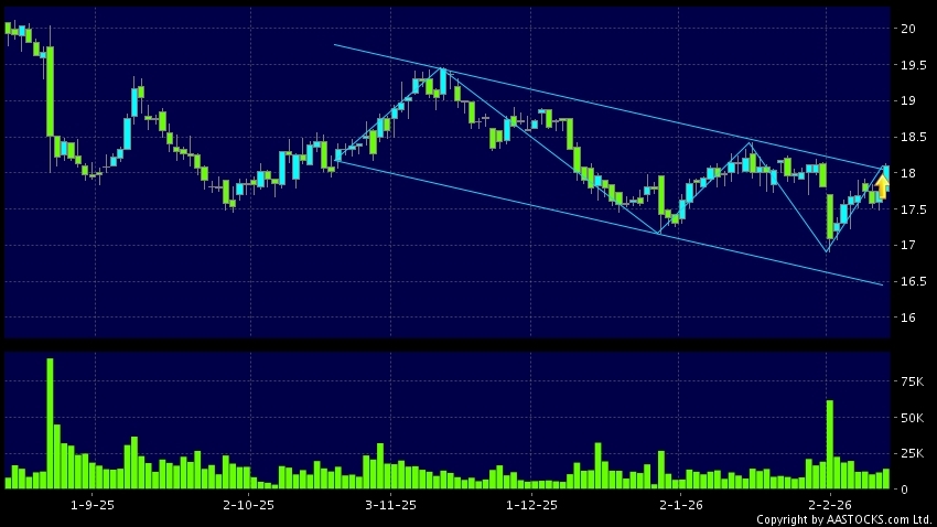 Disclaimer:The information, financial market data, quotes, charts, statistics and / or various technical analysis indicators are automatically generated based on the analyses and interpretations of publicly available information and should be used as references only at your own discretion. Such automatically generated content does not reflect the views or opinions of AASTOCKS.com Limited nor does AASTOCKS.com Limited make any guarantees to their accuracy, completeness, timeliness or correctness. You are advised to consult independent professional advice to verify pricing information or to obtain more detailed market information. Any uses of information or trades executed following the said automatically generated content are taken at your own risk for your own account.