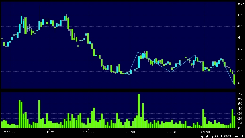 Disclaimer:The information, financial market data, quotes, charts, statistics and / or various technical analysis indicators are automatically generated based on the analyses and interpretations of publicly available information and should be used as references only at your own discretion. Such automatically generated content does not reflect the views or opinions of AASTOCKS.com Limited nor does AASTOCKS.com Limited make any guarantees to their accuracy, completeness, timeliness or correctness. You are advised to consult independent professional advice to verify pricing information or to obtain more detailed market information. Any uses of information or trades executed following the said automatically generated content are taken at your own risk for your own account.