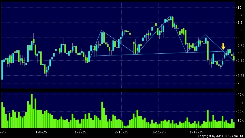Head Shoulders top is a typical bearish signal, when stock price breaks the supportive level, downtrend would possibly start.(HK stocks quote is delayed for at least 15 mins.Short Selling Data as at 2025-12-31 12:25.)