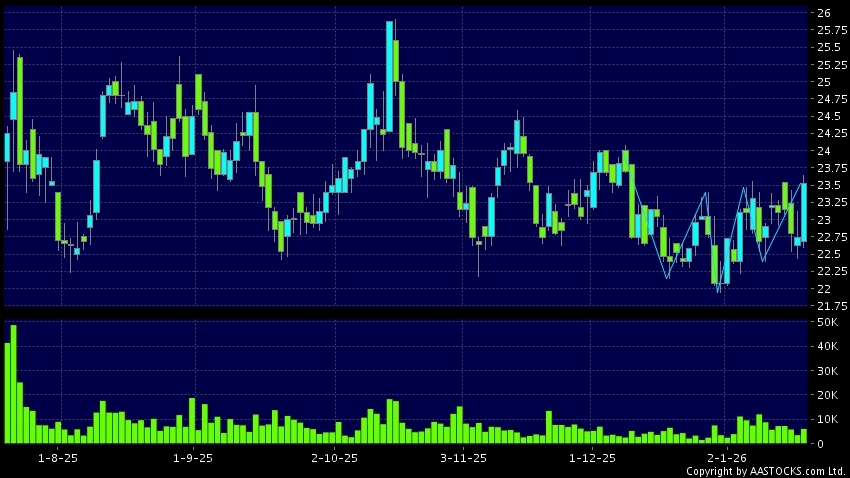 Disclaimer:The information, financial market data, quotes, charts, statistics and / or various technical analysis indicators are automatically generated based on the analyses and interpretations of publicly available information and should be used as references only at your own discretion. Such automatically generated content does not reflect the views or opinions of AASTOCKS.com Limited nor does AASTOCKS.com Limited make any guarantees to their accuracy, completeness, timeliness or correctness. You are advised to consult independent professional advice to verify pricing information or to obtain more detailed market information. Any uses of information or trades executed following the said automatically generated content are taken at your own risk for your own account.