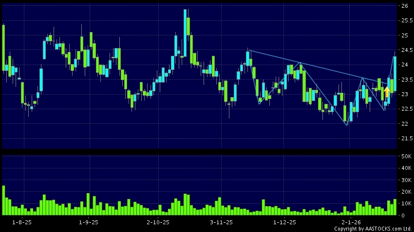 Head Shoulders bottom is a typical bullish signal, when stock price breaks the resistant level, uptrend would possibly start.(HK stocks quote is delayed for at least 15 mins.Short Selling Data as at 2026-01-23 16:25.)