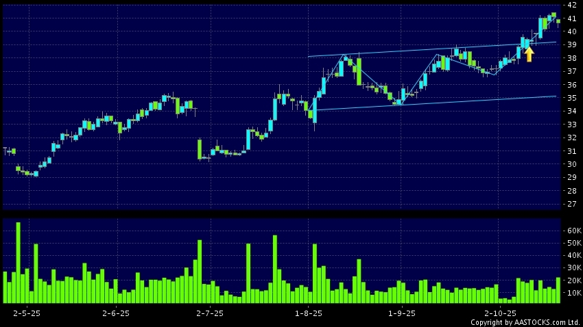 Disclaimer:The information, financial market data, quotes, charts, statistics and / or various technical analysis indicators are automatically generated based on the analyses and interpretations of publicly available information and should be used as references only at your own discretion. Such automatically generated content does not reflect the views or opinions of AASTOCKS.com Limited nor does AASTOCKS.com Limited make any guarantees to their accuracy, completeness, timeliness or correctness. You are advised to consult independent professional advice to verify pricing information or to obtain more detailed market information. Any uses of information or trades executed following the said automatically generated content are taken at your own risk for your own account.