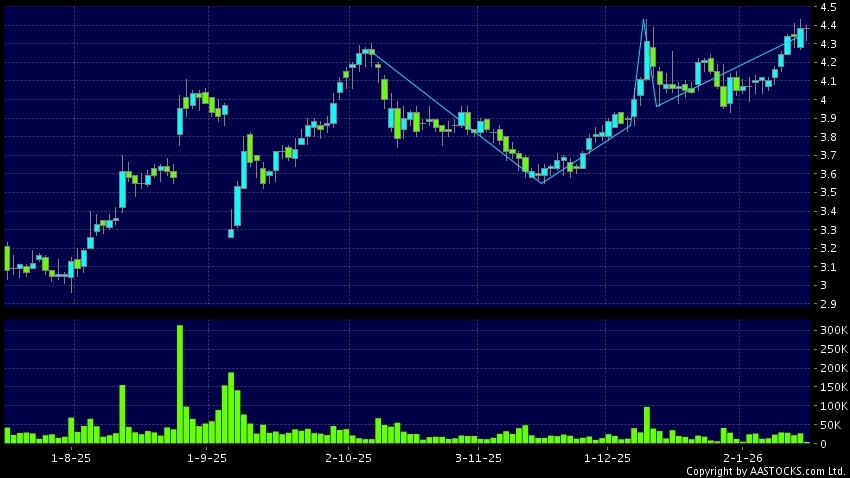 Disclaimer:The information, financial market data, quotes, charts, statistics and / or various technical analysis indicators are automatically generated based on the analyses and interpretations of publicly available information and should be used as references only at your own discretion. Such automatically generated content does not reflect the views or opinions of AASTOCKS.com Limited nor does AASTOCKS.com Limited make any guarantees to their accuracy, completeness, timeliness or correctness. You are advised to consult independent professional advice to verify pricing information or to obtain more detailed market information. Any uses of information or trades executed following the said automatically generated content are taken at your own risk for your own account.