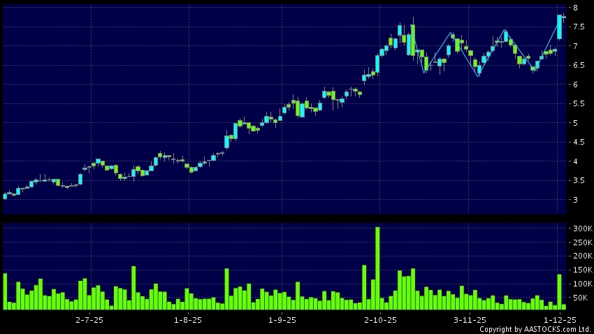 Disclaimer:The information, financial market data, quotes, charts, statistics and / or various technical analysis indicators are automatically generated based on the analyses and interpretations of publicly available information and should be used as references only at your own discretion. Such automatically generated content does not reflect the views or opinions of AASTOCKS.com Limited nor does AASTOCKS.com Limited make any guarantees to their accuracy, completeness, timeliness or correctness. You are advised to consult independent professional advice to verify pricing information or to obtain more detailed market information. Any uses of information or trades executed following the said automatically generated content are taken at your own risk for your own account.