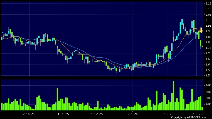 Disclaimer:The information, financial market data, quotes, charts, statistics and / or various technical analysis indicators are automatically generated based on the analyses and interpretations of publicly available information and should be used as references only at your own discretion. Such automatically generated content does not reflect the views or opinions of AASTOCKS.com Limited nor does AASTOCKS.com Limited make any guarantees to their accuracy, completeness, timeliness or correctness. You are advised to consult independent professional advice to verify pricing information or to obtain more detailed market information. Any uses of information or trades executed following the said automatically generated content are taken at your own risk for your own account.
