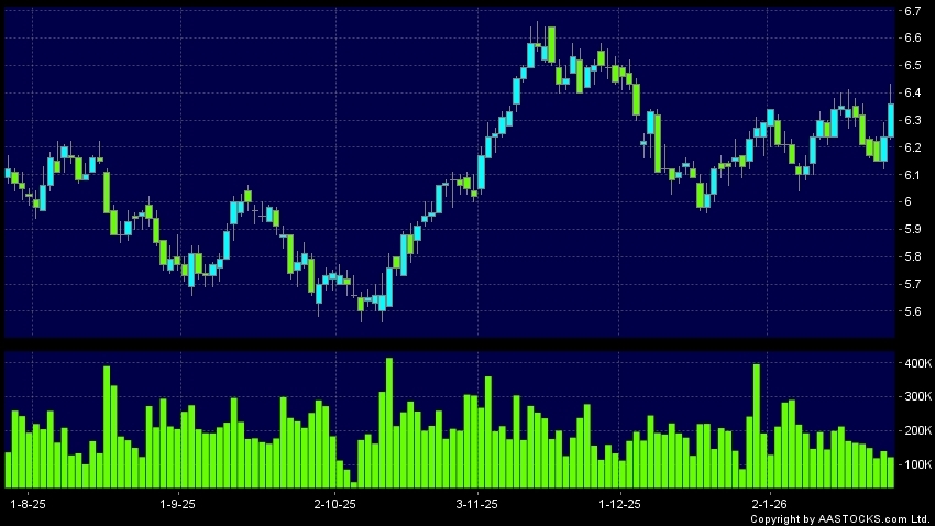 Disclaimer:The information, financial market data, quotes, charts, statistics and / or various technical analysis indicators are automatically generated based on the analyses and interpretations of publicly available information and should be used as references only at your own discretion. Such automatically generated content does not reflect the views or opinions of AASTOCKS.com Limited nor does AASTOCKS.com Limited make any guarantees to their accuracy, completeness, timeliness or correctness. You are advised to consult independent professional advice to verify pricing information or to obtain more detailed market information. Any uses of information or trades executed following the said automatically generated content are taken at your own risk for your own account.