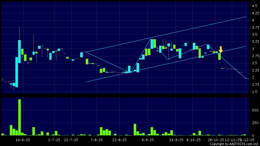 BGMC(01693.HK)  0.000 (0.000%)   appears a downside range breakout. Last printed at 1.950; Flattish; on volume of 0.00 shares and turnover of $0.00