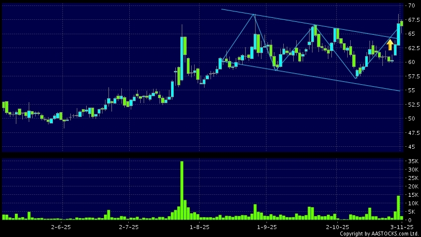 CTG DUTY-FREE(01880.HK) appears an upside range breakout. Last printed at 66.350; fell 0.674%; on volume of 2.26M shares and turnover of $148.99MRecent PerformanceIn 3 days: +10.03...