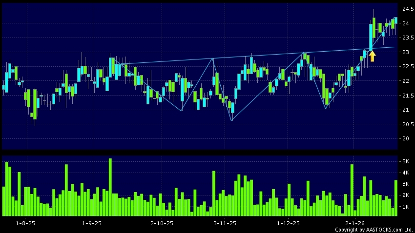 Disclaimer:The information, financial market data, quotes, charts, statistics and / or various technical analysis indicators are automatically generated based on the analyses and interpretations of publicly available information and should be used as references only at your own discretion. Such automatically generated content does not reflect the views or opinions of AASTOCKS.com Limited nor does AASTOCKS.com Limited make any guarantees to their accuracy, completeness, timeliness or correctness. You are advised to consult independent professional advice to verify pricing information or to obtain more detailed market information. Any uses of information or trades executed following the said automatically generated content are taken at your own risk for your own account.