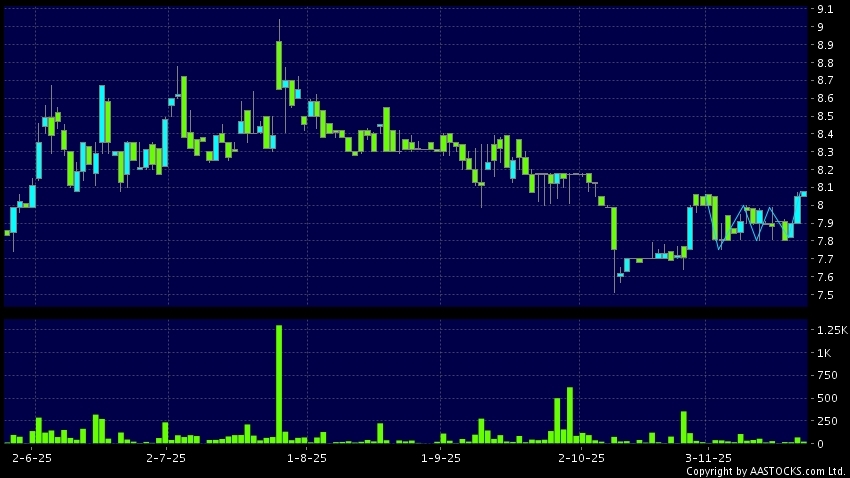 Disclaimer:The information, financial market data, quotes, charts, statistics and / or various technical analysis indicators are automatically generated based on the analyses and interpretations of publicly available information and should be used as references only at your own discretion. Such automatically generated content does not reflect the views or opinions of AASTOCKS.com Limited nor does AASTOCKS.com Limited make any guarantees to their accuracy, completeness, timeliness or correctness. You are advised to consult independent professional advice to verify pricing information or to obtain more detailed market information. Any uses of information or trades executed following the said automatically generated content are taken at your own risk for your own account.