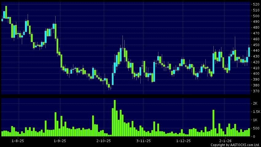 Disclaimer:The information, financial market data, quotes, charts, statistics and / or various technical analysis indicators are automatically generated based on the analyses and interpretations of publicly available information and should be used as references only at your own discretion. Such automatically generated content does not reflect the views or opinions of AASTOCKS.com Limited nor does AASTOCKS.com Limited make any guarantees to their accuracy, completeness, timeliness or correctness. You are advised to consult independent professional advice to verify pricing information or to obtain more detailed market information. Any uses of information or trades executed following the said automatically generated content are taken at your own risk for your own account.