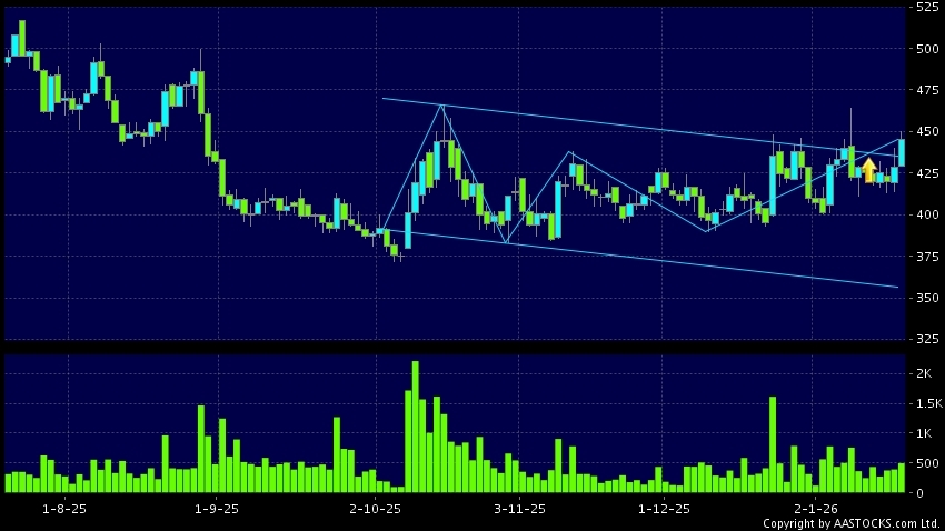 MIXUE GROUP(02097.HK) appears an upside range breakout. Last printed at 445.000; rose 3.826%; on volume of 494.11K shares and turnover of $219.23MRecent PerformanceIn 3 days: +4.70...