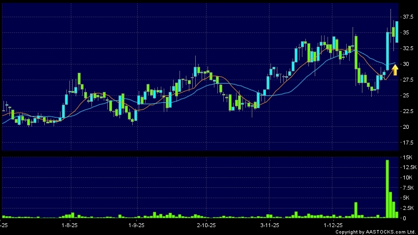 BIOCYTOGEN-B(02315.HK)  -0.560 (-1.586%)   's SMA 10 crosses above SMA 20, which is a golden cross. Last printed at 36.680; rose 6.690%; on volume of 1.77M shares and turnover of $63.27M