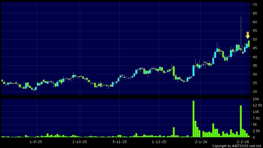 Disclaimer:The information, financial market data, quotes, charts, statistics and / or various technical analysis indicators are automatically generated based on the analyses and interpretations of publicly available information and should be used as references only at your own discretion. Such automatically generated content does not reflect the views or opinions of AASTOCKS.com Limited nor does AASTOCKS.com Limited make any guarantees to their accuracy, completeness, timeliness or correctness. You are advised to consult independent professional advice to verify pricing information or to obtain more detailed market information. Any uses of information or trades executed following the said automatically generated content are taken at your own risk for your own account.