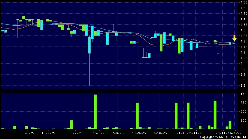 SEACON(02409.HK)'s SMA 10 crosses below SMA 20, which is a death cross. Last printed at 4.100; fell 2.148%; on volume of 3.00K shares and turnover of $12.30KRecent PerformanceIn 3 ...