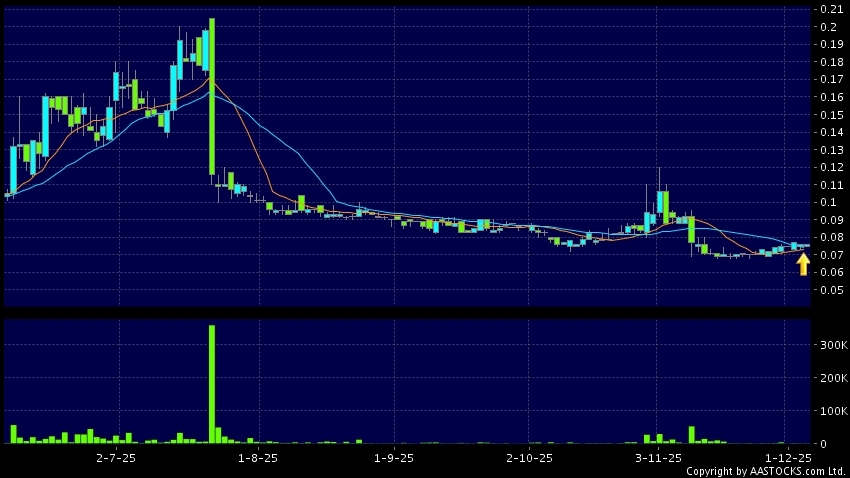 ZT HN GROUP(02433.HK)'s SMA 10 crosses above SMA 20, which is a golden cross. Last printed at 0.076; Flattish; on volume of 792.00K shares and turnover of $59.71KRecent Performance...