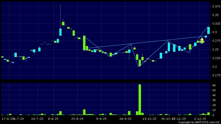 FW FASHION INT(02528.HK)  0.000 (0.000%)   appears an upside breakout, rose above the neckline. Last printed at 0.315; rose 8.621%; on volume of 540.00K shares and turnover of $163.66K