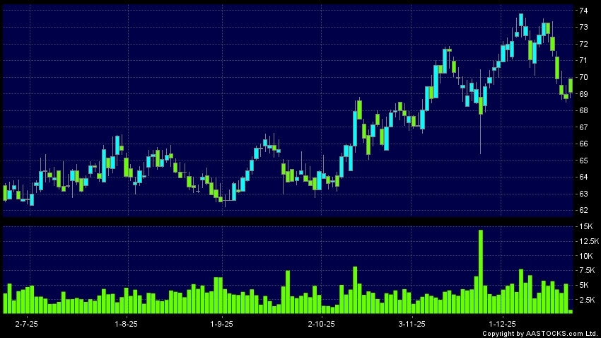 Disclaimer:The information, financial market data, quotes, charts, statistics and / or various technical analysis indicators are automatically generated based on the analyses and interpretations of publicly available information and should be used as references only at your own discretion. Such automatically generated content does not reflect the views or opinions of AASTOCKS.com Limited nor does AASTOCKS.com Limited make any guarantees to their accuracy, completeness, timeliness or correctness. You are advised to consult independent professional advice to verify pricing information or to obtain more detailed market information. Any uses of information or trades executed following the said automatically generated content are taken at your own risk for your own account.
