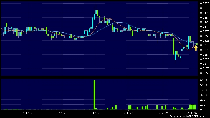 SHANGHAI XNG(03666.HK)'s SMA 10 crosses above SMA 20, which is a golden cross. Last printed at 0.030; fell 3.226%; on volume of 38.00K shares and turnover of $1.15KRecent Performan...