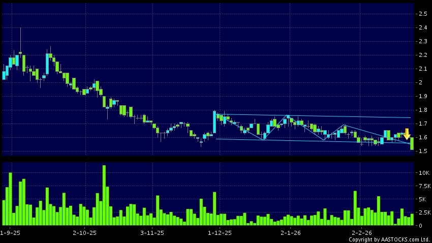Range Breakout means stock price moved in a range recently, and it broke the bottom of the range finally. Investor should watch closely.(HK stocks quote is delayed for at least 15 mins.Short Selling Data as at 2026-03-06 16:25.)