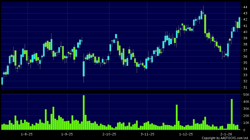 Disclaimer:The information, financial market data, quotes, charts, statistics and / or various technical analysis indicators are automatically generated based on the analyses and interpretations of publicly available information and should be used as references only at your own discretion. Such automatically generated content does not reflect the views or opinions of AASTOCKS.com Limited nor does AASTOCKS.com Limited make any guarantees to their accuracy, completeness, timeliness or correctness. You are advised to consult independent professional advice to verify pricing information or to obtain more detailed market information. Any uses of information or trades executed following the said automatically generated content are taken at your own risk for your own account.