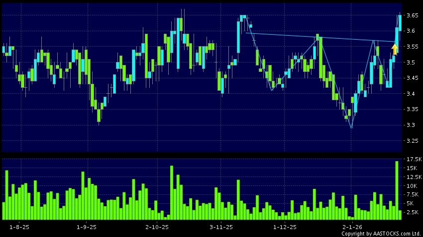 Head Shoulders bottom is a typical bullish signal, when stock price breaks the resistant level, uptrend would possibly start.(HK stocks quote is delayed for at least 15 mins.Short Selling Data as at 2026-01-30 16:25.)