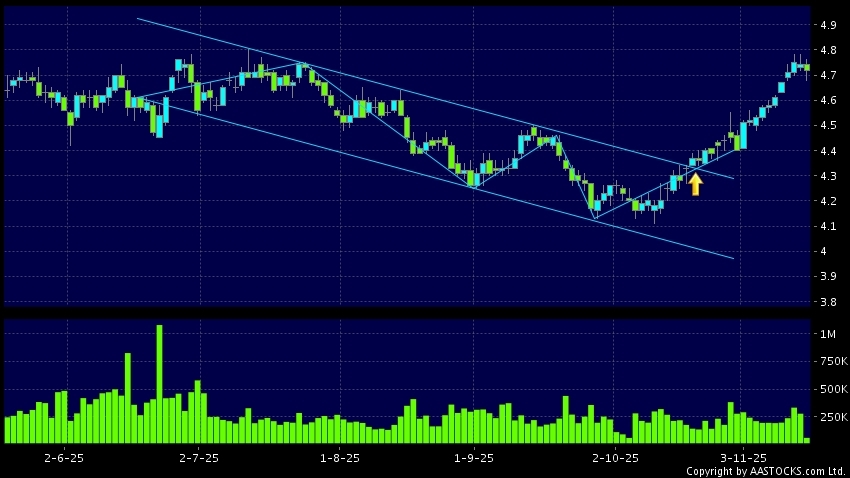 Disclaimer:The information, financial market data, quotes, charts, statistics and / or various technical analysis indicators are automatically generated based on the analyses and interpretations of publicly available information and should be used as references only at your own discretion. Such automatically generated content does not reflect the views or opinions of AASTOCKS.com Limited nor does AASTOCKS.com Limited make any guarantees to their accuracy, completeness, timeliness or correctness. You are advised to consult independent professional advice to verify pricing information or to obtain more detailed market information. Any uses of information or trades executed following the said automatically generated content are taken at your own risk for your own account.