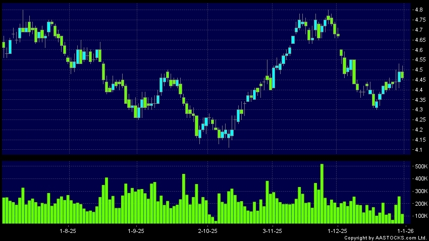 Disclaimer:The information, financial market data, quotes, charts, statistics and / or various technical analysis indicators are automatically generated based on the analyses and interpretations of publicly available information and should be used as references only at your own discretion. Such automatically generated content does not reflect the views or opinions of AASTOCKS.com Limited nor does AASTOCKS.com Limited make any guarantees to their accuracy, completeness, timeliness or correctness. You are advised to consult independent professional advice to verify pricing information or to obtain more detailed market information. Any uses of information or trades executed following the said automatically generated content are taken at your own risk for your own account.