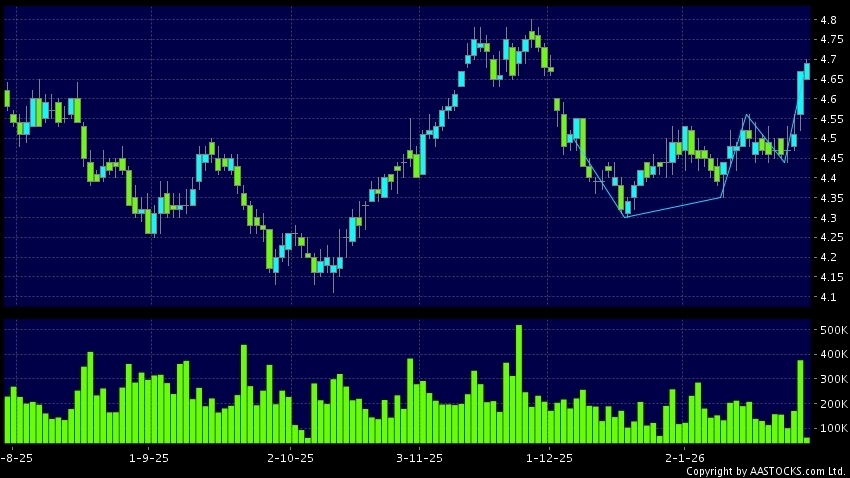 Disclaimer:The information, financial market data, quotes, charts, statistics and / or various technical analysis indicators are automatically generated based on the analyses and interpretations of publicly available information and should be used as references only at your own discretion. Such automatically generated content does not reflect the views or opinions of AASTOCKS.com Limited nor does AASTOCKS.com Limited make any guarantees to their accuracy, completeness, timeliness or correctness. You are advised to consult independent professional advice to verify pricing information or to obtain more detailed market information. Any uses of information or trades executed following the said automatically generated content are taken at your own risk for your own account.