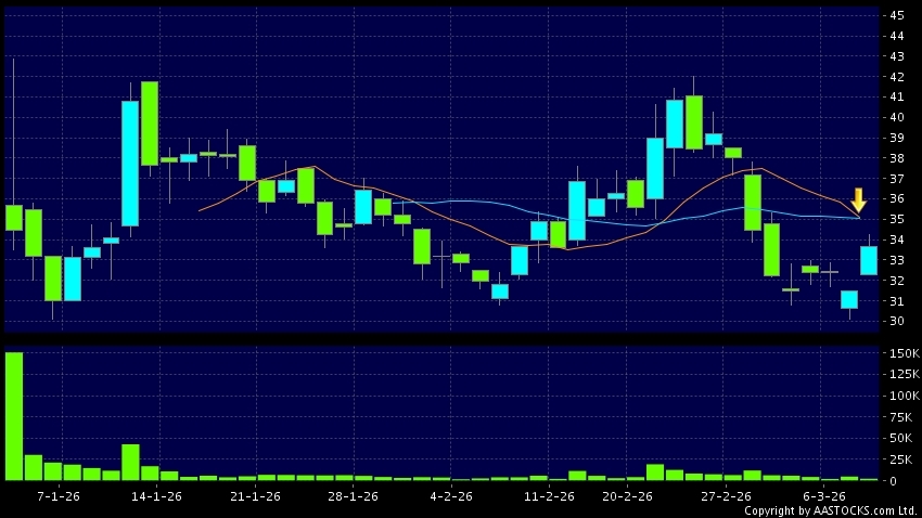 Death cross is a bearish signal, which the short term SMA crosses below long term SMA, such as SMA 50 crosses below SMA 250. Investor should watch closely.(HK stocks quote is delayed for at least 15 mins.Short Selling Data as at 2026-03-10 16:25.)