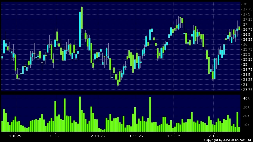 Disclaimer:The information, financial market data, quotes, charts, statistics and / or various technical analysis indicators are automatically generated based on the analyses and interpretations of publicly available information and should be used as references only at your own discretion. Such automatically generated content does not reflect the views or opinions of AASTOCKS.com Limited nor does AASTOCKS.com Limited make any guarantees to their accuracy, completeness, timeliness or correctness. You are advised to consult independent professional advice to verify pricing information or to obtain more detailed market information. Any uses of information or trades executed following the said automatically generated content are taken at your own risk for your own account.