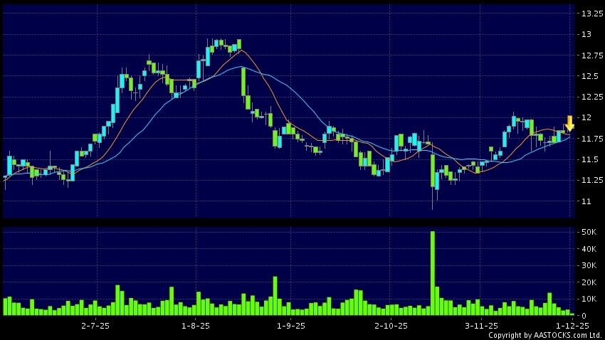 HKT-SS(06823.HK)  -0.060 (-0.506%)    Short selling $2.48M; Ratio 3.398%   's SMA 10 crosses below SMA 20, which is a death cross. Last printed at 11.880; fell 0.168%; on volume of 1.30M shares and turnover of $15.44M