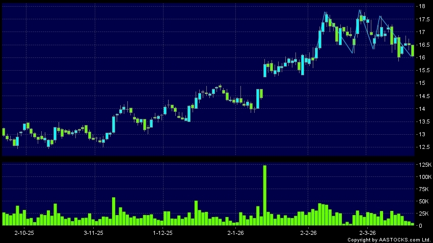 Disclaimer:The information, financial market data, quotes, charts, statistics and / or various technical analysis indicators are automatically generated based on the analyses and interpretations of publicly available information and should be used as references only at your own discretion. Such automatically generated content does not reflect the views or opinions of AASTOCKS.com Limited nor does AASTOCKS.com Limited make any guarantees to their accuracy, completeness, timeliness or correctness. You are advised to consult independent professional advice to verify pricing information or to obtain more detailed market information. Any uses of information or trades executed following the said automatically generated content are taken at your own risk for your own account.