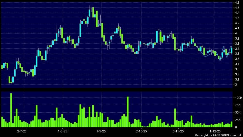 Disclaimer:The information, financial market data, quotes, charts, statistics and / or various technical analysis indicators are automatically generated based on the analyses and interpretations of publicly available information and should be used as references only at your own discretion. Such automatically generated content does not reflect the views or opinions of AASTOCKS.com Limited nor does AASTOCKS.com Limited make any guarantees to their accuracy, completeness, timeliness or correctness. You are advised to consult independent professional advice to verify pricing information or to obtain more detailed market information. Any uses of information or trades executed following the said automatically generated content are taken at your own risk for your own account.