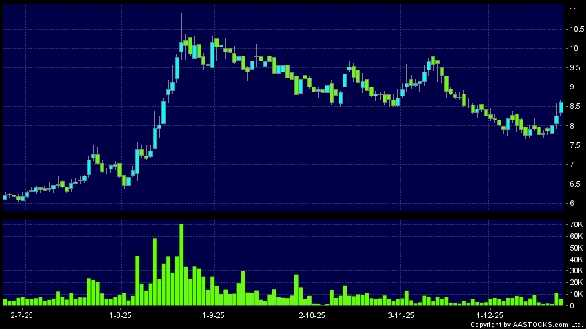 Disclaimer:The information, financial market data, quotes, charts, statistics and / or various technical analysis indicators are automatically generated based on the analyses and interpretations of publicly available information and should be used as references only at your own discretion. Such automatically generated content does not reflect the views or opinions of AASTOCKS.com Limited nor does AASTOCKS.com Limited make any guarantees to their accuracy, completeness, timeliness or correctness. You are advised to consult independent professional advice to verify pricing information or to obtain more detailed market information. Any uses of information or trades executed following the said automatically generated content are taken at your own risk for your own account.