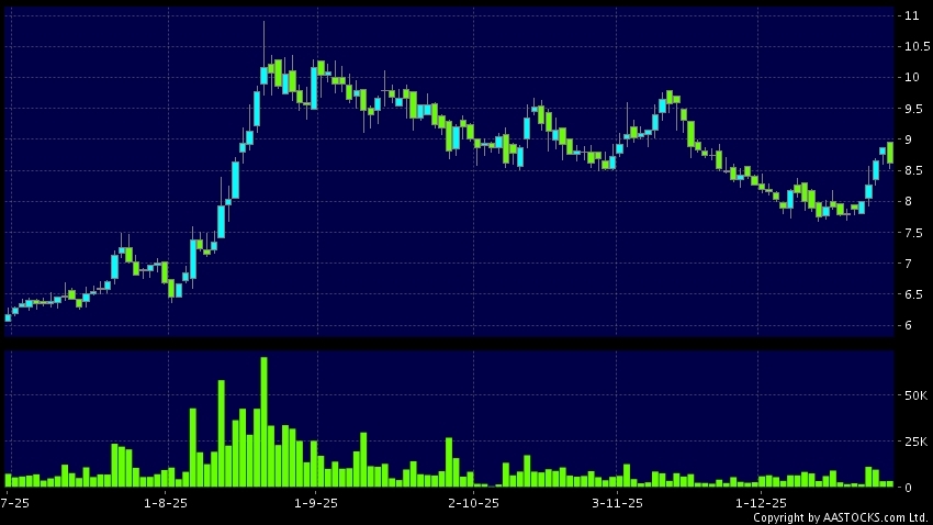 Disclaimer:The information, financial market data, quotes, charts, statistics and / or various technical analysis indicators are automatically generated based on the analyses and interpretations of publicly available information and should be used as references only at your own discretion. Such automatically generated content does not reflect the views or opinions of AASTOCKS.com Limited nor does AASTOCKS.com Limited make any guarantees to their accuracy, completeness, timeliness or correctness. You are advised to consult independent professional advice to verify pricing information or to obtain more detailed market information. Any uses of information or trades executed following the said automatically generated content are taken at your own risk for your own account.